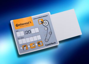 8. Registre el cambio de la correa de distribución original ContiTech en el adhesivo suministrado (fig.13) y péguelo en el vano motor.