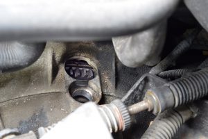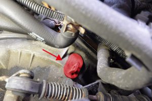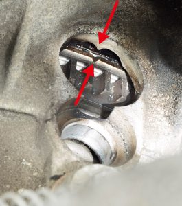 3. Comprobar la marca del cigüeñal. Para ello, retirar los topes de goma de la campana del cambio (figs. 2, 3 y 4). La marca (muesca) del volante de inercia debe quedar alineada con la marca (punta) de la abertura (fig. 5).