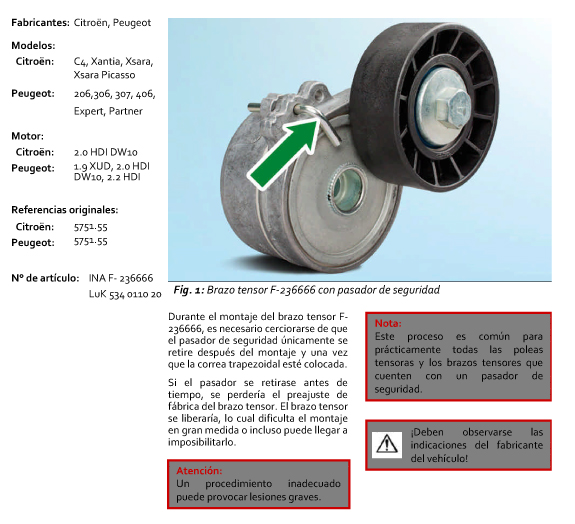 INA – INDICACIONES DE MONTAJE DEL BRAZO TENSOR F-236666 CON PASADOR DE SEGURIDAD
