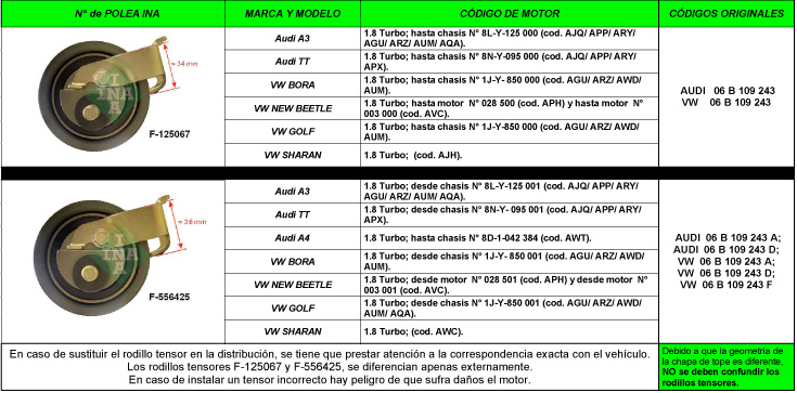 INA – POLEAS TENSORAS VW F- 125067 y F-556425
