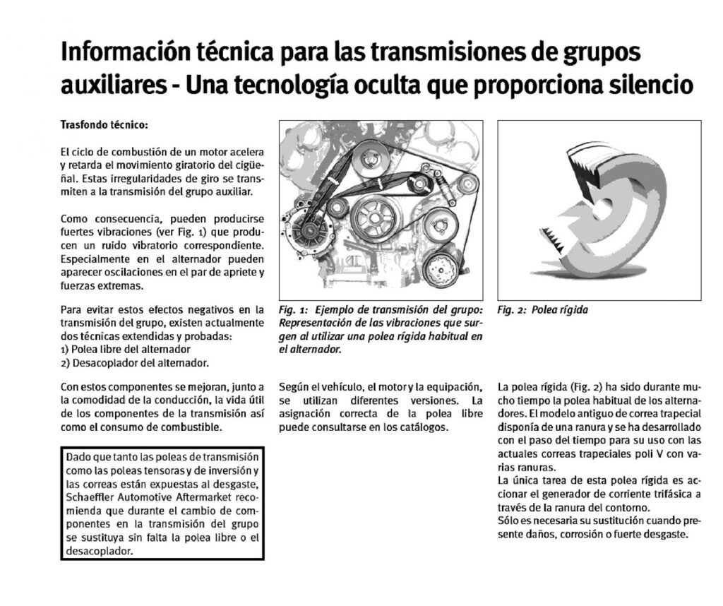 INA – TENSORES DE CORREA: POLEAS DE GIRO LIBRE PARA ALTERNADORES
