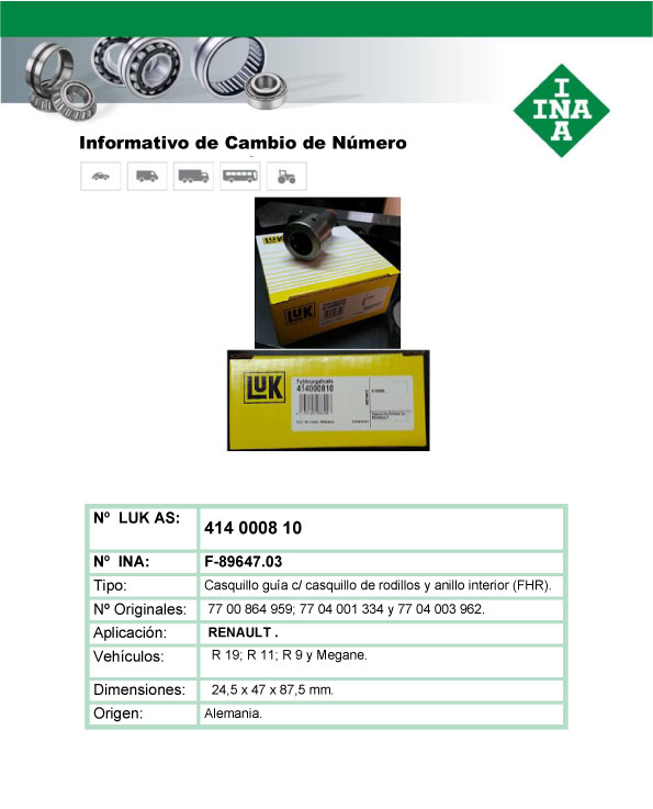 LUK – CAMBIOS DE NUMERACION